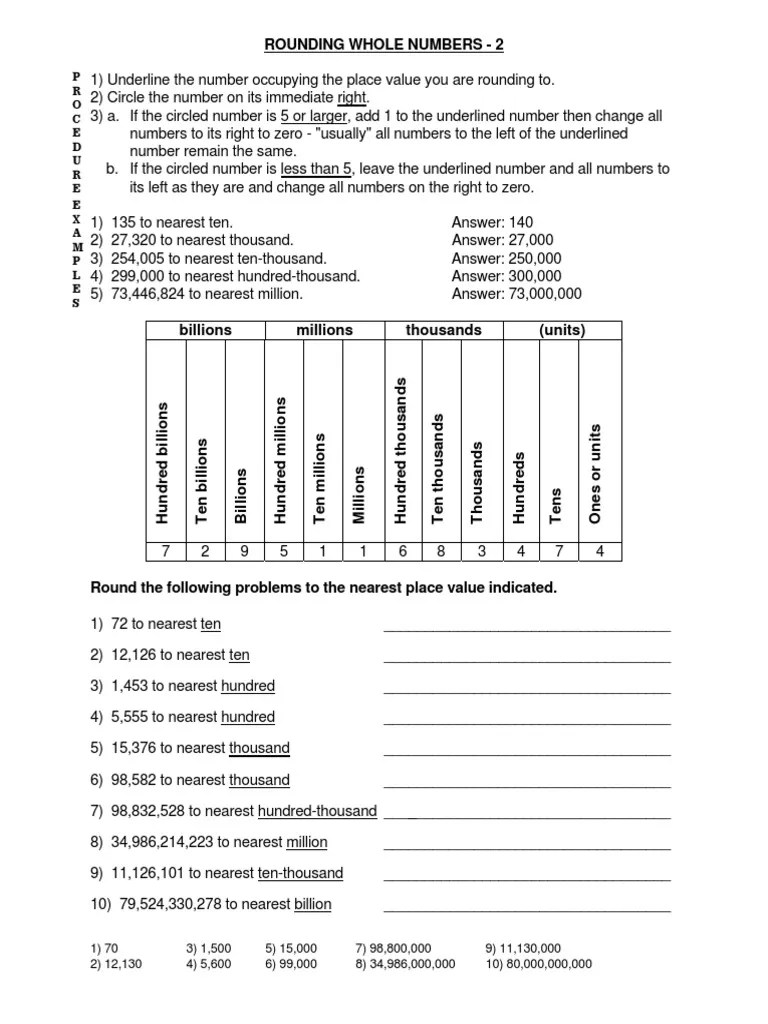 To round integer numbers to the nearest tens, hundreds, or thousands. Rounding numbers to the millions can be tricky for many young mathematicians . Round each number to the nearest tens and hundreds Grade 5 math worksheets on rounding large numbers to the underlined digit. This comprehensive teaching pack is perfect for year 5 as it meets the national curriculum aim 'round any number up to 1 000 000 to the nearest 10, 100, 1000, .